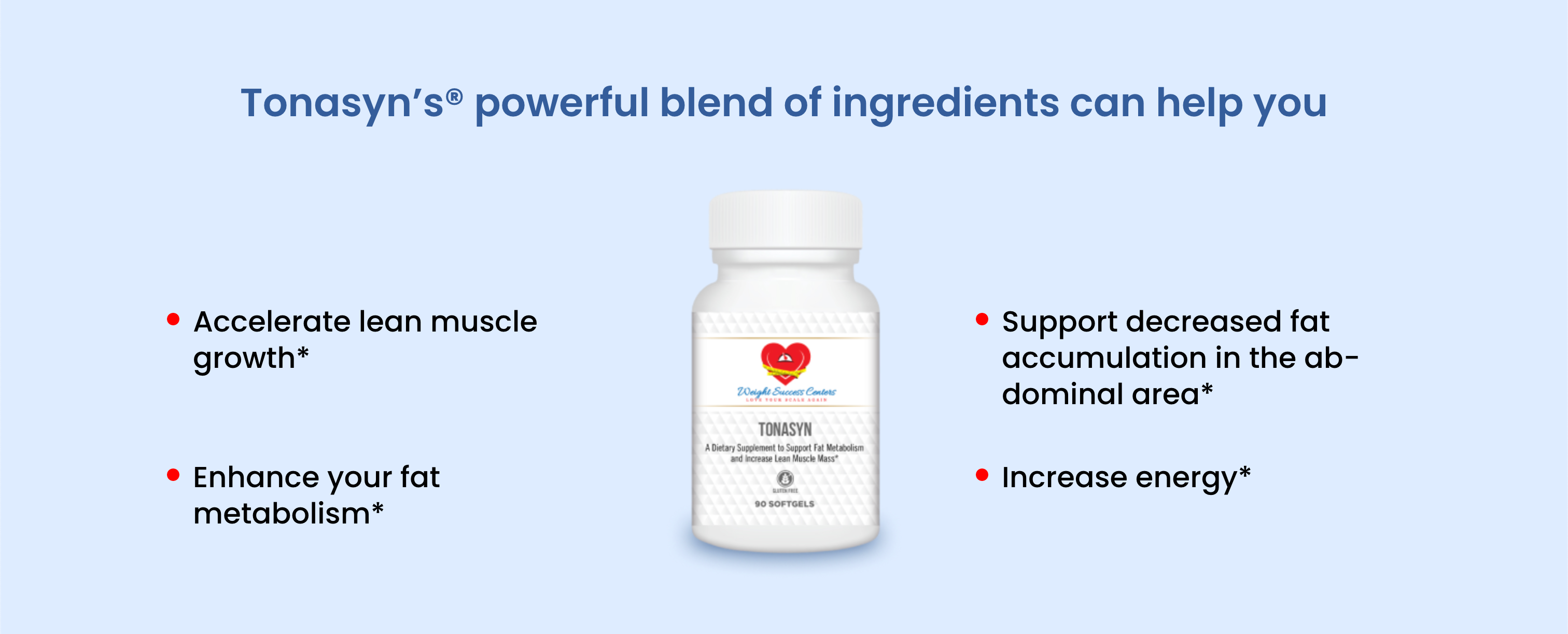 If you use Semaglutide or Tirzepatide injections to lose weight then you need Tonasyn®!* Tonasyn® helps you maintain lean muscle mass while enhancing your fat loss.*